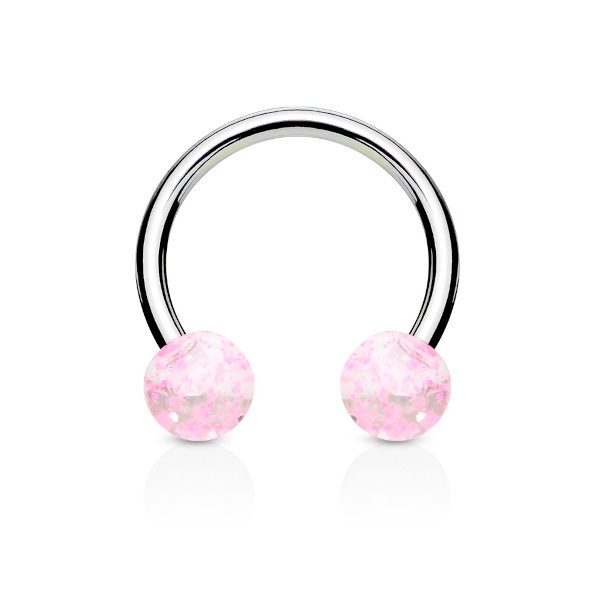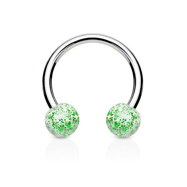 Циркуляр из хирургической стали 316L с акриловыми шариками с переливающимися цветными блестками.
