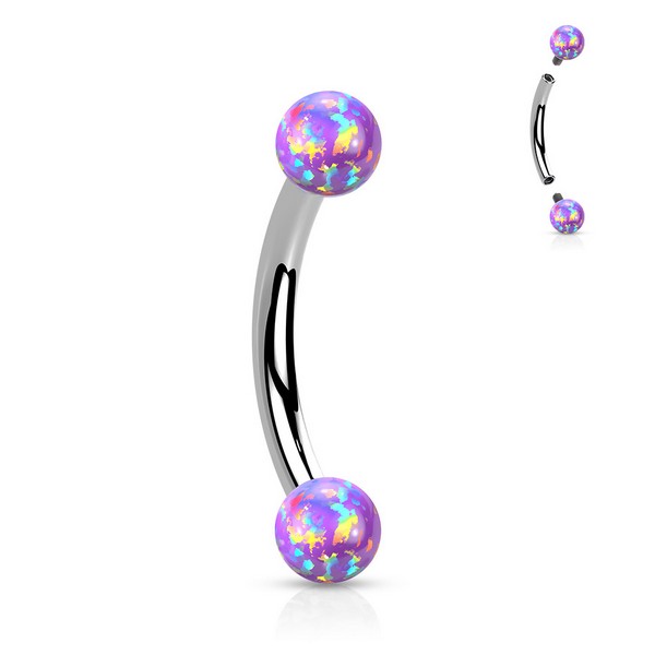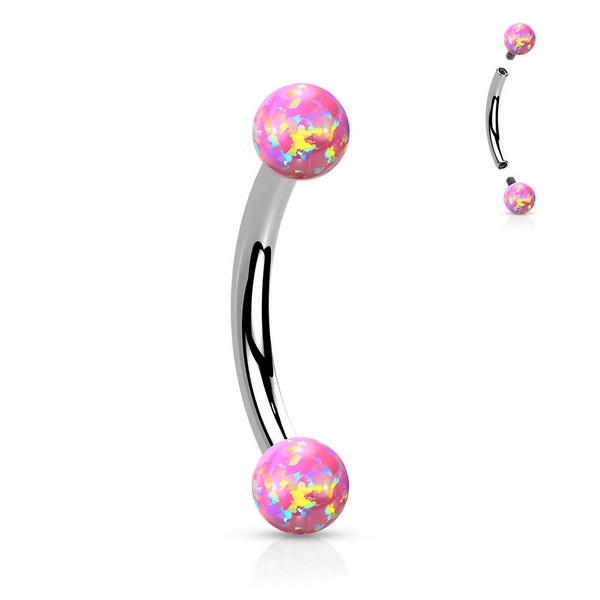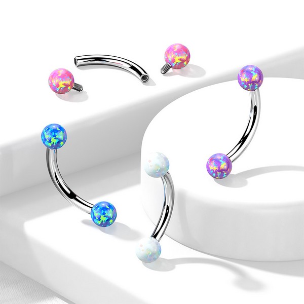 Микробанан из хирургической стали 316L с внутренней резьбой, украшен шариками из лабораторного опала.