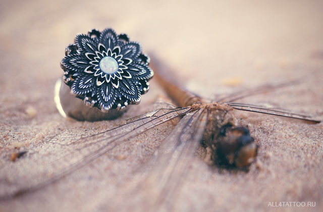 Плаги из хирургической стали 316L украшенные латунным родированным цветком с сердцевиной из искусственного опала.