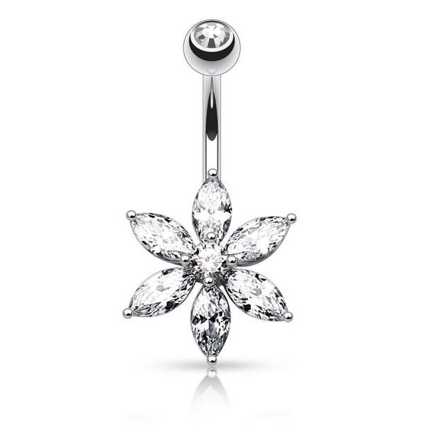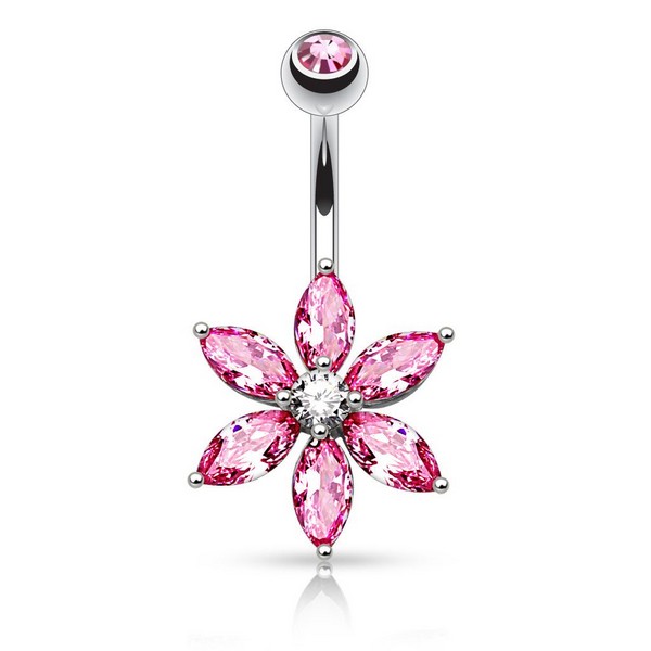 Фигурный банан "Цветок" из хирургической стали 316L. Украшен яркими лепестками-стразами.