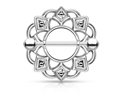 Украшение из родированной латуни со штангой из хирургической стали 316L.