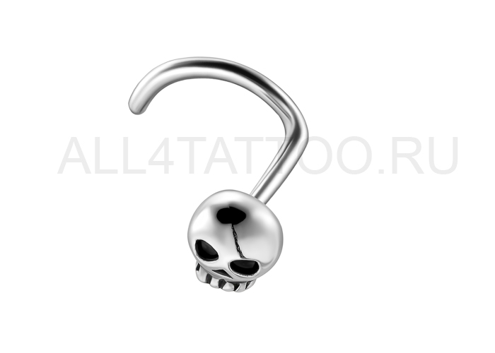 Нострил из хирургической стали 316L в форме черепа.