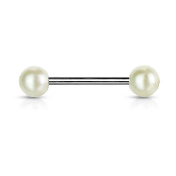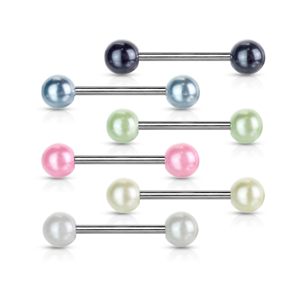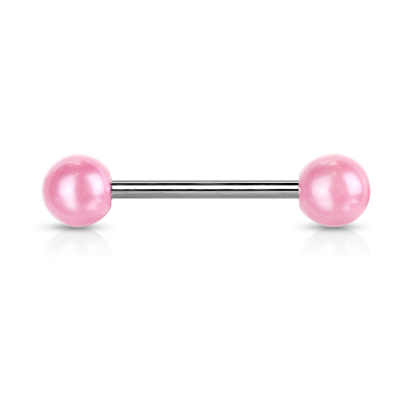 Штанга для языка "Жемчужина", штанга из хирургической стали 316L, шарики-перламутровый акрил.