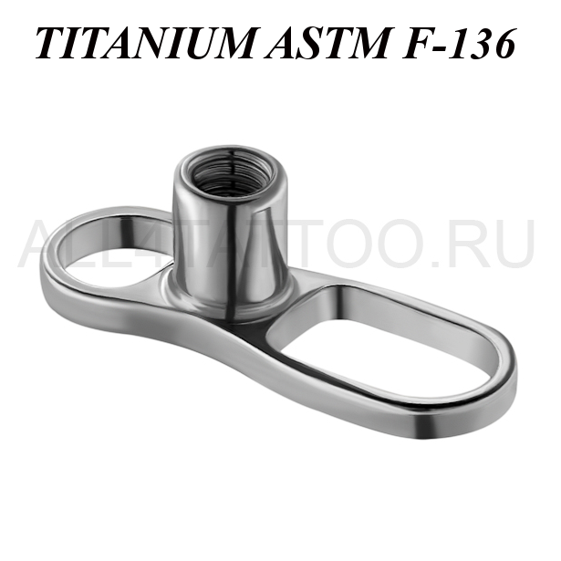 Якорь для микродермала из имплантационного титана ASTМ F-136  с двумя отверстиями. Толщина стойки микродермала 1.6мм, под накрутки с толщиной резьбы 1.2мм.
