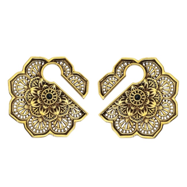 Литые подвесы из латуни в форме мандалы с чёрным ониксом в центре.