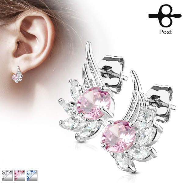 Серьги из хирургической стали 316L. Декоративная часть выполнена из родированной латуни и украшена стразами.