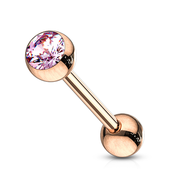 Штанга для языка из хирургической стали 316L с IP покрытием из розового золота и стразом.
