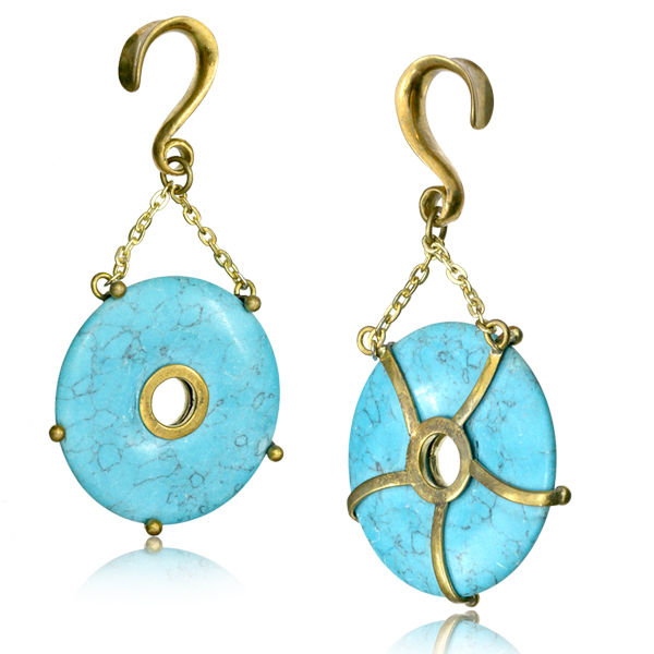 Подвесы из латуни в комбинации с диском из искусственной бирюзы.
