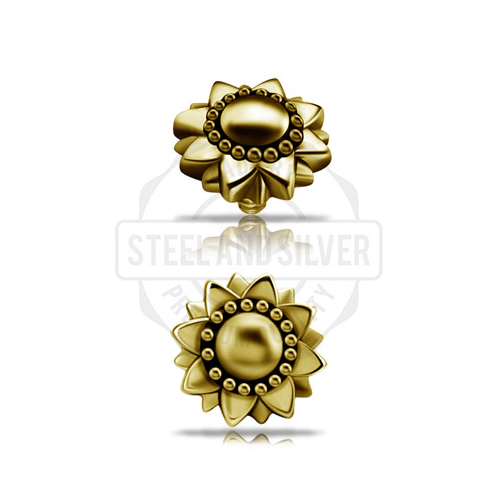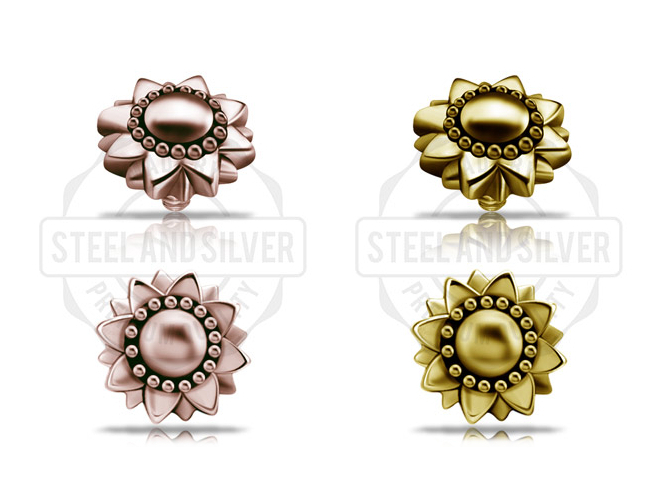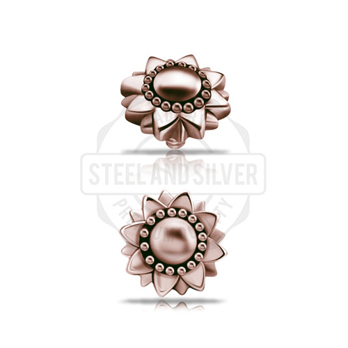 Накрутка из хирургической стали 316L с PVD покрытием жёлтого и розового золота. Диаметр декоративной части - 6мм. Резьба накруток 1,2мм подходят к микродермалам и украшениям толщиной 1,6мм с внутренней резьбой.
