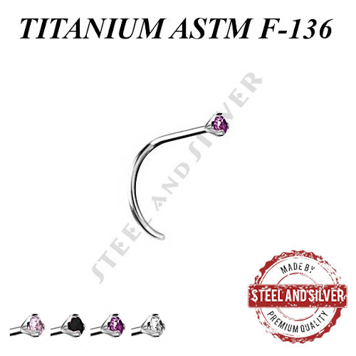 Нострил из имплантационного титана ASTM F-136 украшен фианитом.