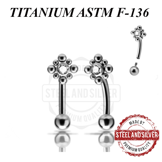 Микробанан с внутренней резьбой из имплантационного титана 6Al-4V-Eli ASTM: F-136. Украшен кластером с кристаллом Swarovski диаметром 5мм.