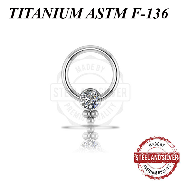 Кольцо из имплантационного титана 6Al-4V-Eli ASTM: F-136 украшено кластером с премиальным кристаллом.