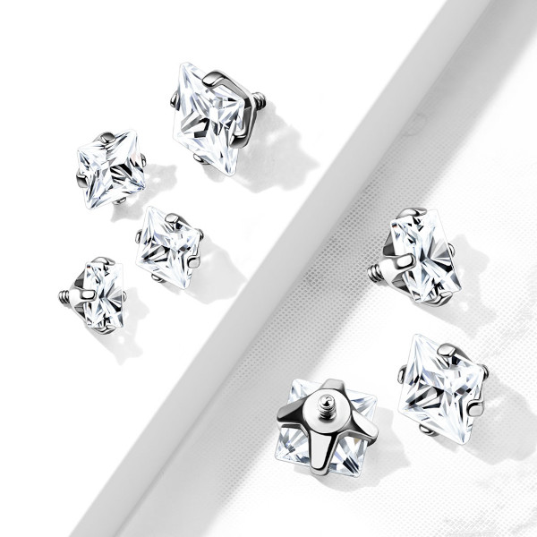 Накрутка из хирургической стали 316L. Украшена квадратным кристаллом. Резьба 1,2мм подходит для микродермалов и украшений с внутренней резьбой толщиной 1,6мм.
