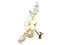 Микроштанга из хирургической стали 316L с декоративной частью из родированной латуни. Украшена комбинацией стразов и резного цветка из перламутра.
