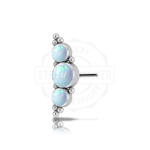 Вставка из имплантационного титана 6Al-4V-Eli ASTM: F-136 для безрезьбового украшения. Украшена лабораторными опалами диаметром 3 и 4мм.