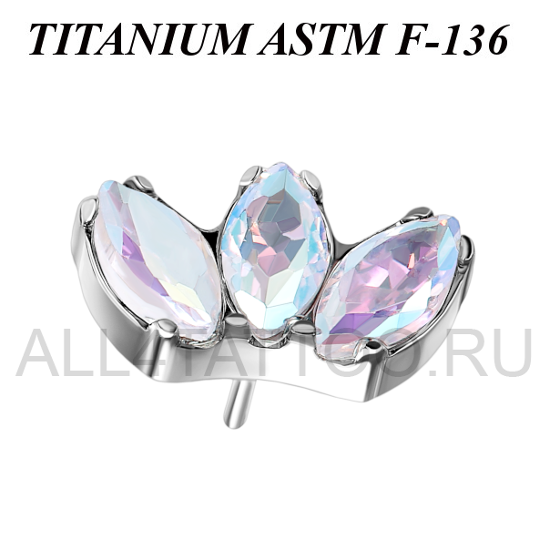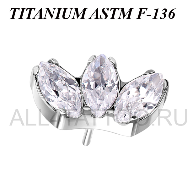 Вставка из имплантационного титана 6Al-4V-Eli ASTM: F-136. Украшена тремя кристаллами огранки "маркиз".