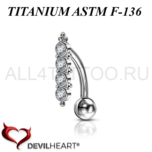 Банан от бренда Devil Heart. Изготовлен из имплантационного титана 6Al-4V-Eli ASTM: F-136 и украшены сетом Premium Zirconia. Внутренняя резьба. Каждое украшение отполированно вручную до зеркального блеска и упаковано в индивидуальный кейс.