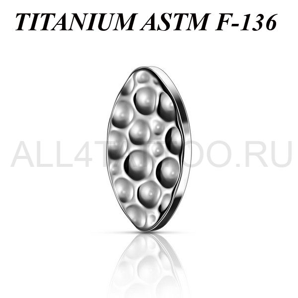 Накрутка из имплантационного титана 6Al-4V-Eli ASTM: F-136 в форме эллипса с рельефными лунками. Размер декоративной части:3х5мм. Подходит для украшений с внутренней резьбой.