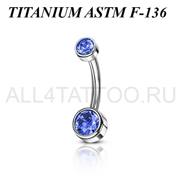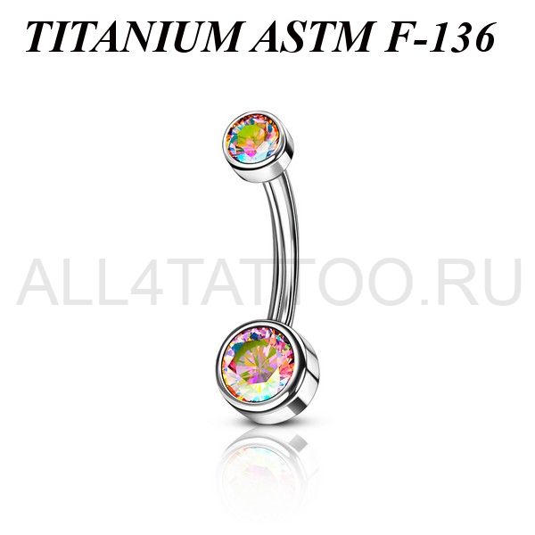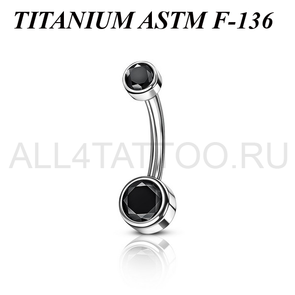 Банан из имплантационного титана 6Al-4V-Eli ASTM: F-136 с внутренней резьбой. Украшен яркими фианитами. Диаметр нижнего шарика - 6мм, верхнего - 4мм.