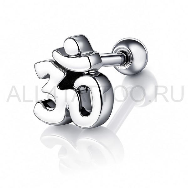 Микроштанга фигурная из хирургической стали 316L в виде знака Ом. Размер декоративной части: 7х7,5мм.