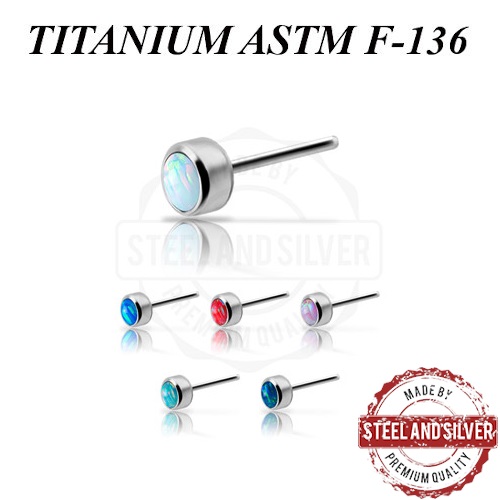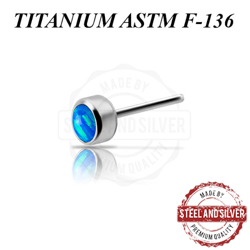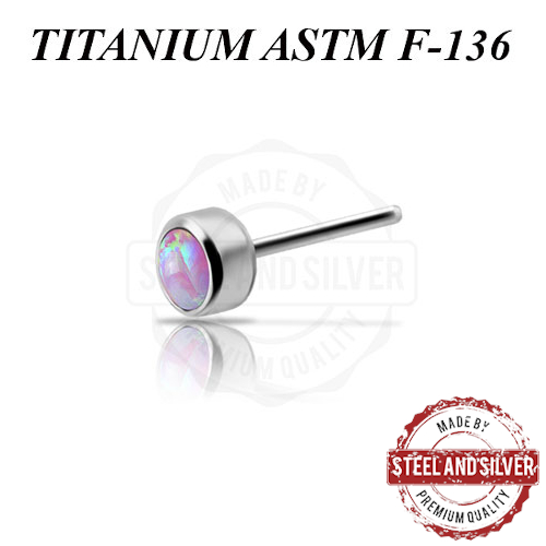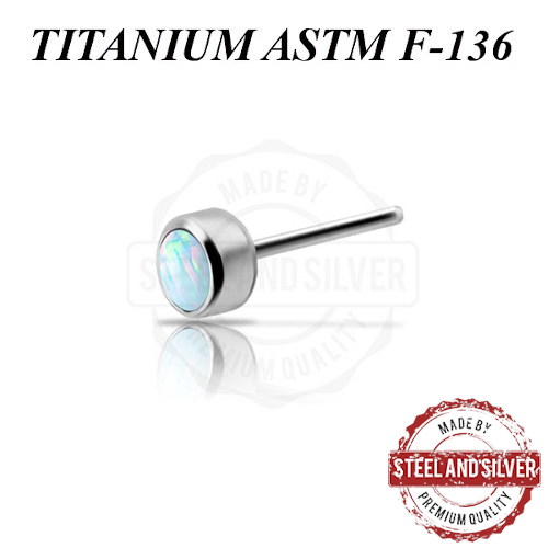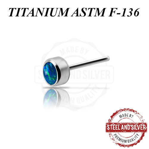 Вставка  из имплантационного титана 6Al-4V-Eli ASTM: F-136 для безрезьбовых украшений. Украшена лабораторным опалом.