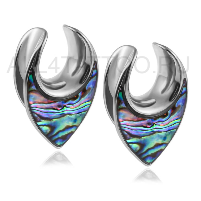 Эффектные фигурные тоннели из 316L стали. Украшены вставками из перламутра.