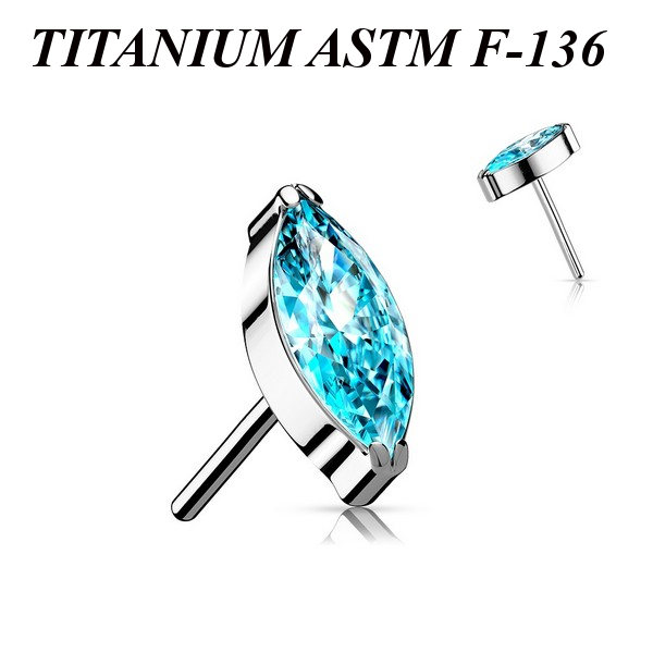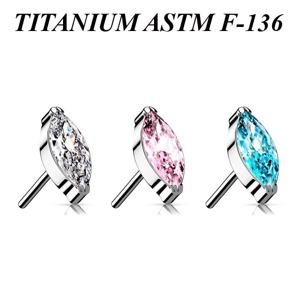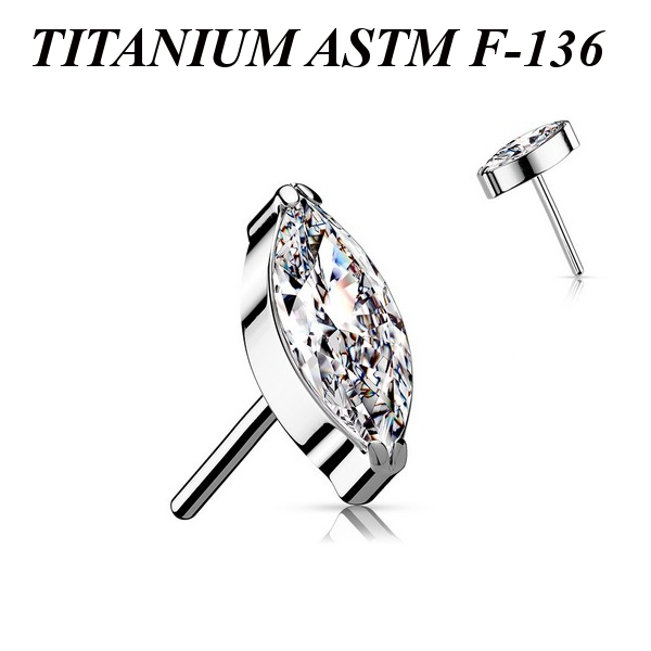 Вставка из имплантационного титана 6Al-4V-Eli ASTM: F-136 для безрезьбовых украшений с фианитом огранки "маркиз".