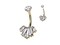 Банан с внутренней резьбой из хирургической стали 316L с декоративной частью из родированной латуни, украшенной прозрачными кристаллами. Представлен в классическом стальном варианте и с золотым PVD покрытием. Размер декоративной части: 13х9мм.