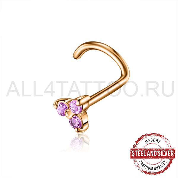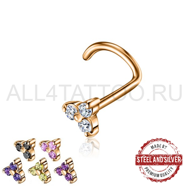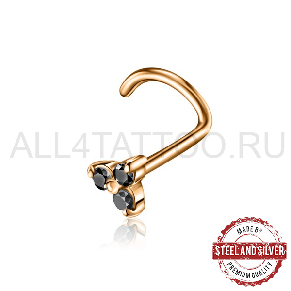 • Нострил с золотым покрытием Steel and Silver триада