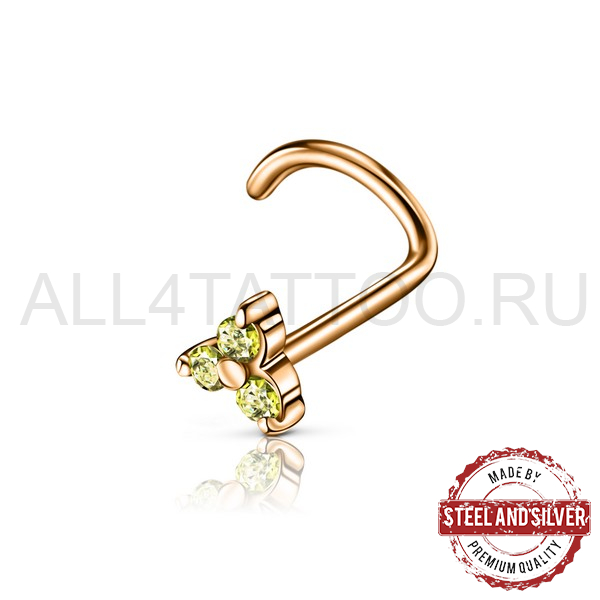 Нострил из хирургической стали 316L с PVD покрытием из 24х каратного золота. Украшен кристаллами Cubic Zirconia.