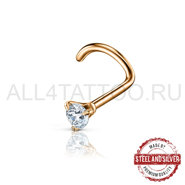 Нострил из хирургической стали 316L с PVD покрытием из 24х каратного золота.Украшен прозрачным кристаллом Cubic Zirconia.