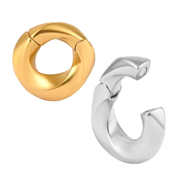 Подвесы-кликеры из хирургической стали 316L с магнитным креплением. Представлены в двух вариантах: классические стальные и с золотым PVD покрытием.