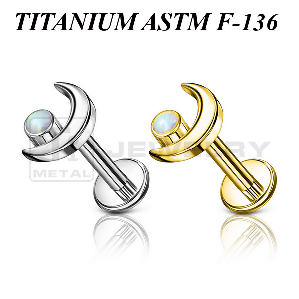 • Лабрет из титана Ti Metal луна с опалом