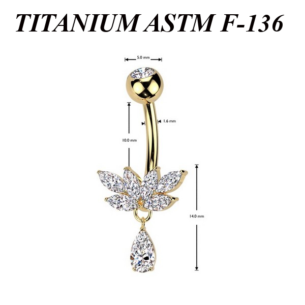 Банан из имплантационного титана 6Al-4V-Eli ASTM: F-136 с декоративной частью из родированной латуни в сочетании с фианитами. Размер декоративной части: 14х11мм. Представлен в двух вариантах: классический титановый и с золотым PVD покрытием.