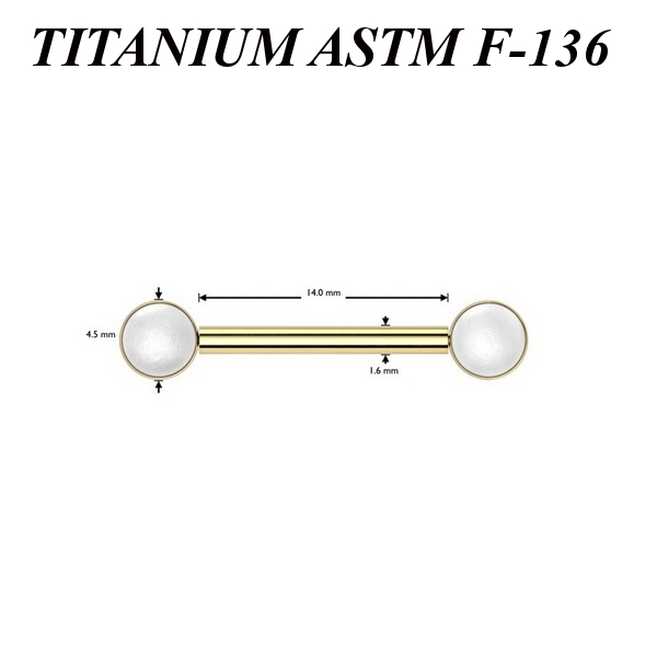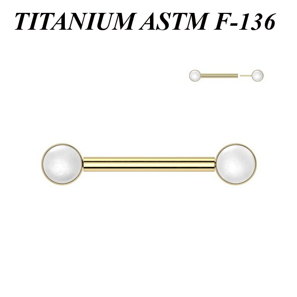 Безрезьбовое украшение из имплантационного титана 6Al-4V-Eli ASTM: F-136. Украшено искусственными жемчужинами. Представлено в двух вариантах: классическое титановое и с золотым PVD покрытием.