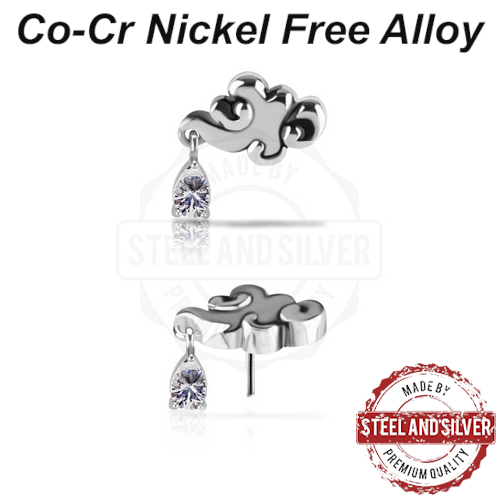 Вставка для безрезьбовых украшений из сплава кобальт-хрома, без содержания никеля. Украшена кристаллом Premium Cubic Zirconia. Представлен так же вариант с 18-ти каратным золотым PVD покрытием. Размер декоративной части: 8,4х8мм.