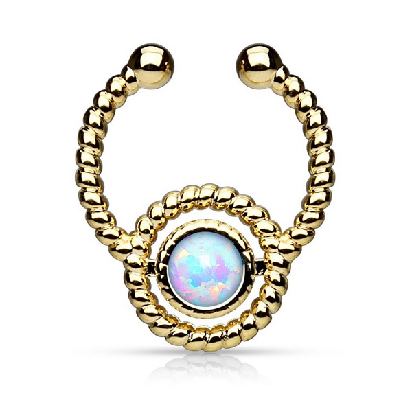 Обманка для септума из родированной латуни с золотым IP покрытием. Украшена лабораторным опалом